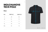 Premium piqué fabric with 2% Lycra, reinforced side cutouts and collar, and elastic cuffs make the Tech Polo convenient and comfortable to wear for all activities, especially stretching and dry training sessions. Outside details include branded buttons, along with the Molchanovs logo embroidered on the chest and the word “FREEDIVING” embroidered on the sleeve, both in the recognizable Molchanovs turquoise color. Jacquard fabric on the inside features the famous quote by Natalia Molchanova, "Freediving is not only a sport, it’s a way to understand who we are."